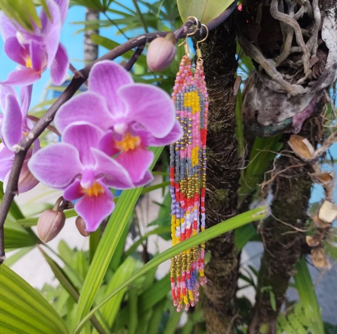 As peças 1d1tudo são únicas, tecidas uma conta por vez em um trabalho manual longo e o gancho é banhado a ouro, para melhor conforto de nossa clientes!