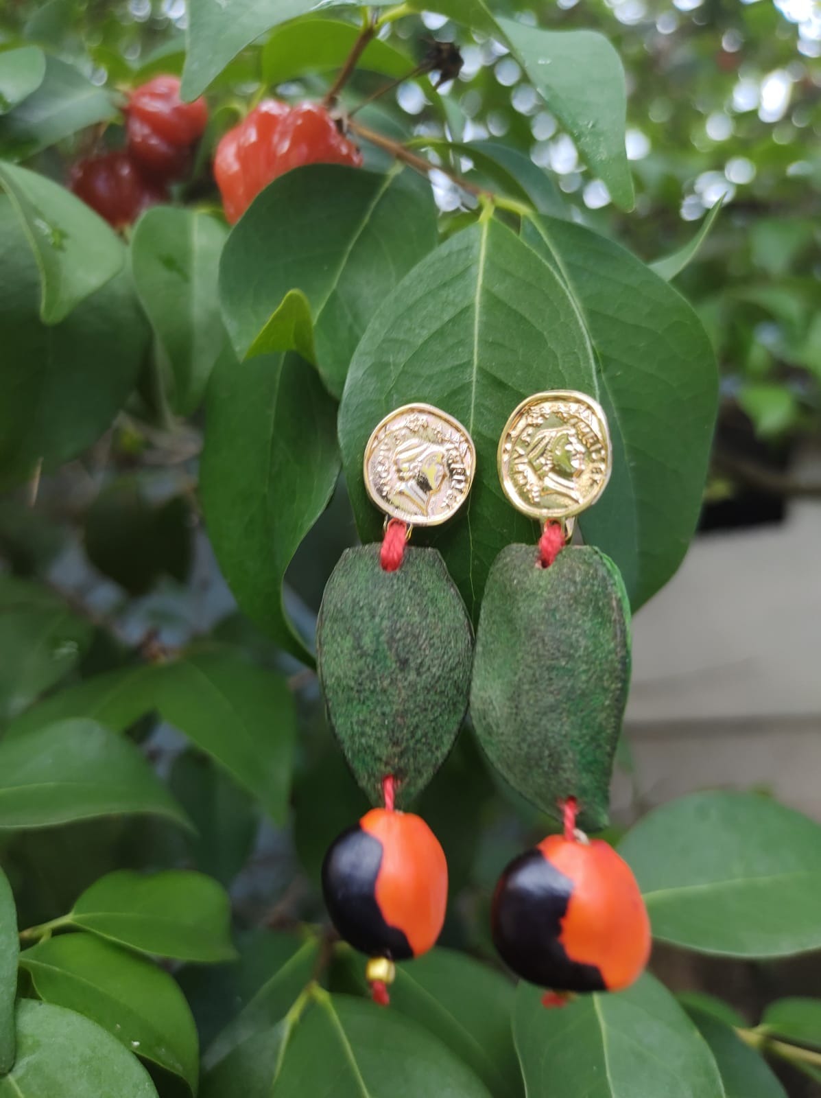 Esse Brinco carrega folha de Estrelinha com semente olho de cabra.